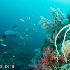 生物においても深場の環境下に適応している魚やその他の生物が数多く生息していて、鮮やかで独創的な色彩を持つものも見ることができます。